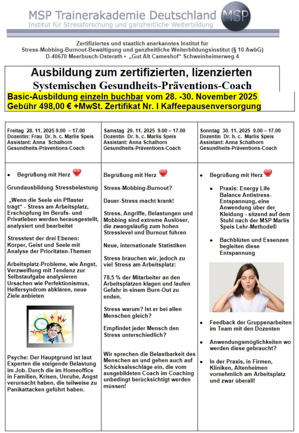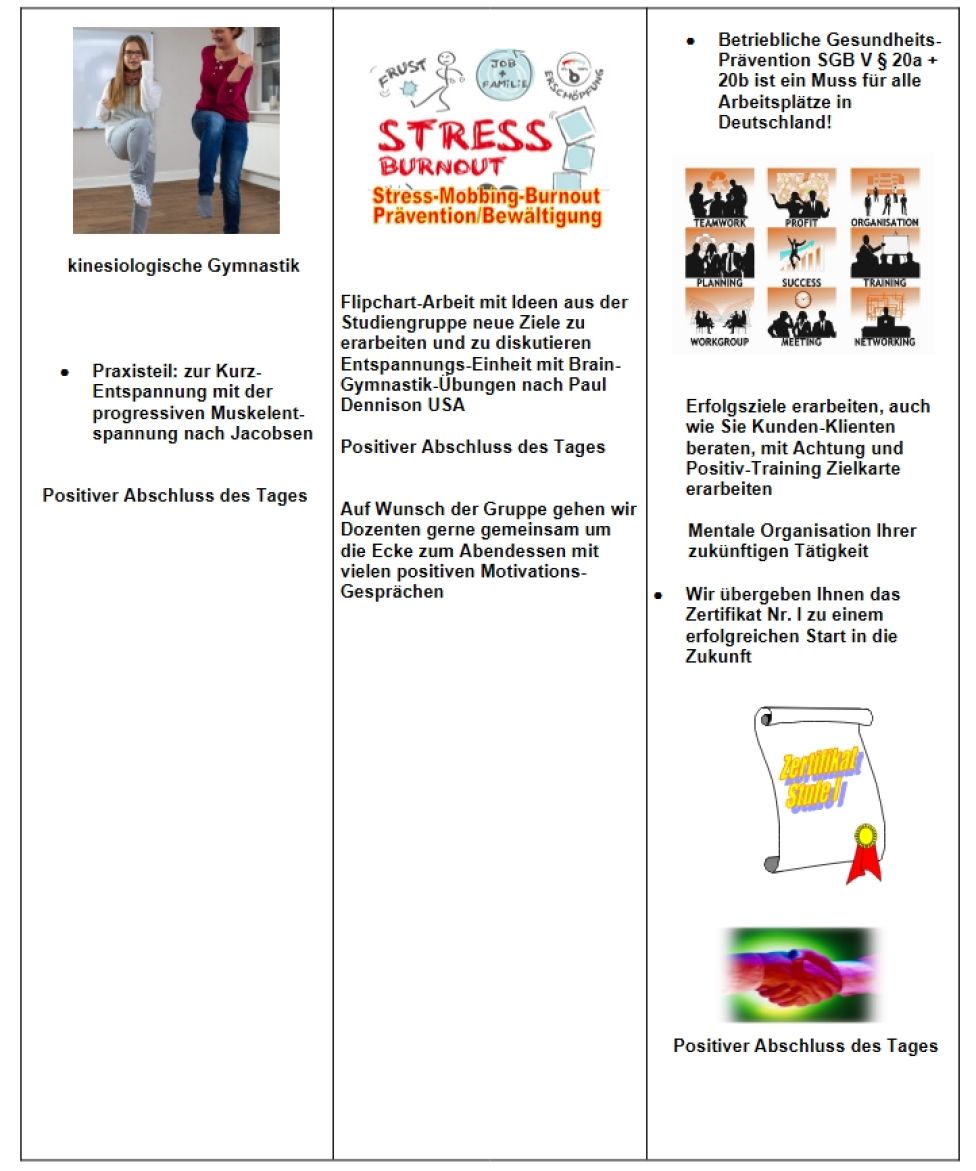 ... zur Stress-Burnout-Mobbing-Bewältigung am Arbeitsplatz, gemäß SGB V § 20a + 20b mit zertifiziertem, lizenziertem Studienabschluss.